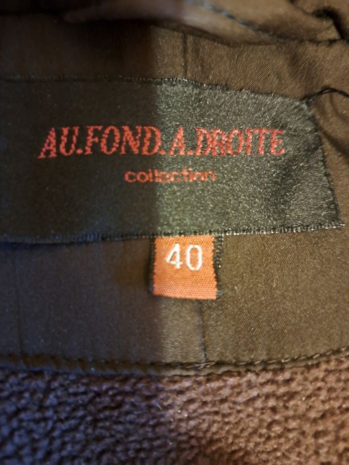 Manteau femme Taille 40 Marque AU FOND A DROITE Couleur marron Capuche amovible (fermeture éclair) Ceinture 1 poche à l'intérieur qui se ferme avec une fermeture éclair Polaire à l'intérieur Mi long Fermeture éclair Les 2 poches sont trouées mais c'est recousable État impeccable