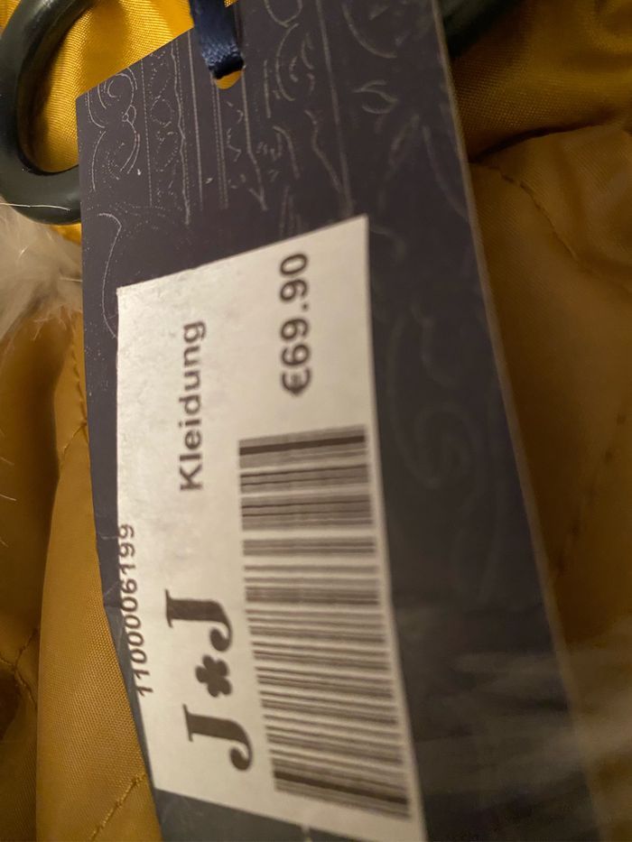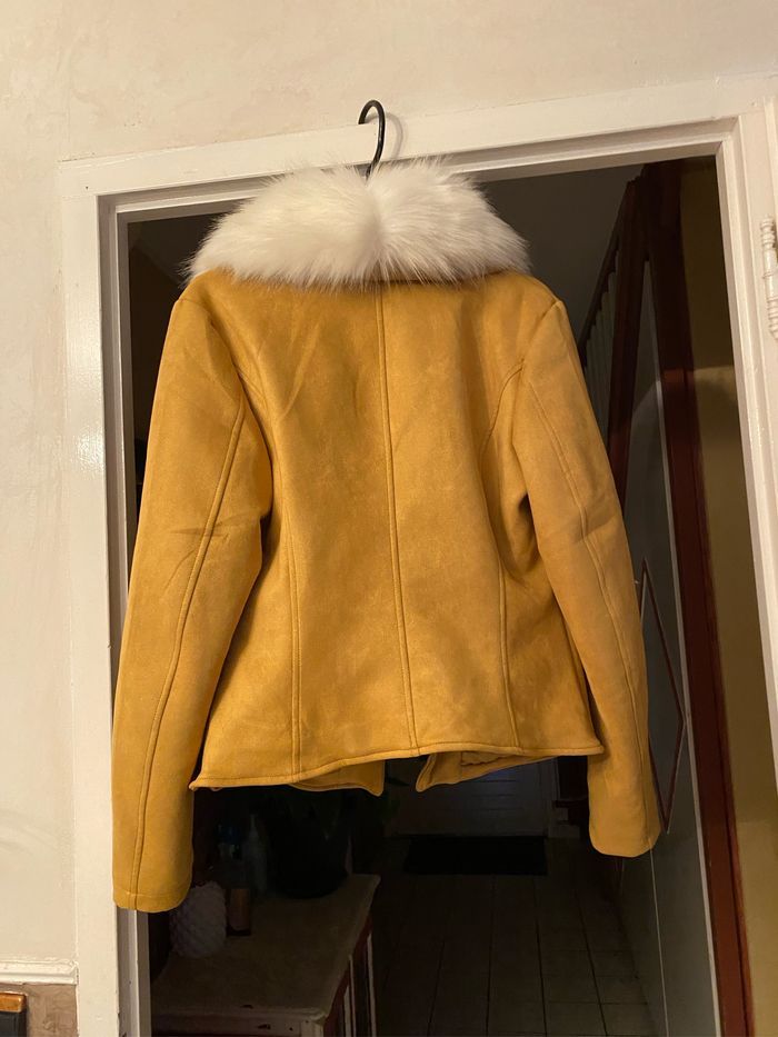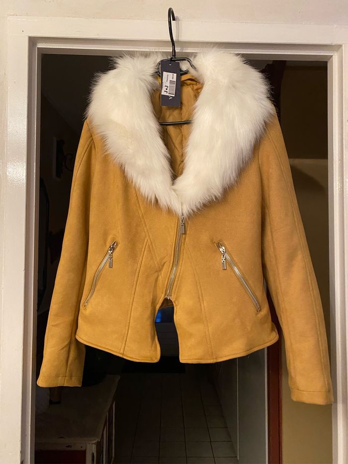 Neuve très jolie veste ,tromper de taille couleur moutarde 2 poches devant fermeture éclair devant