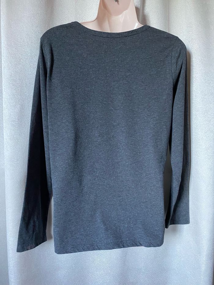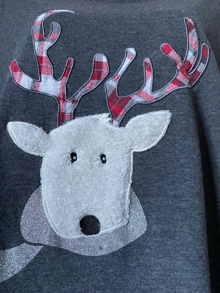 Haut de pyjama gris tout doux en parfait état Manches longues Brodé renne fourrure synthétique et bois tartan col paillettes argentées 60% coton 40% polyester taille L Etam