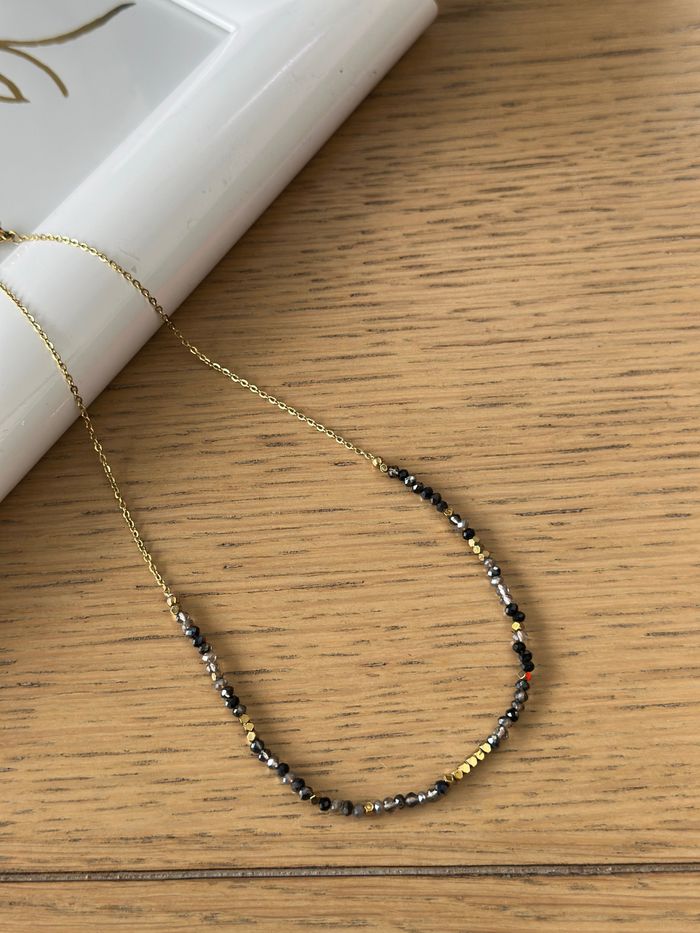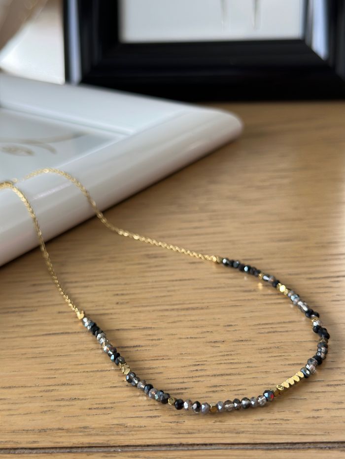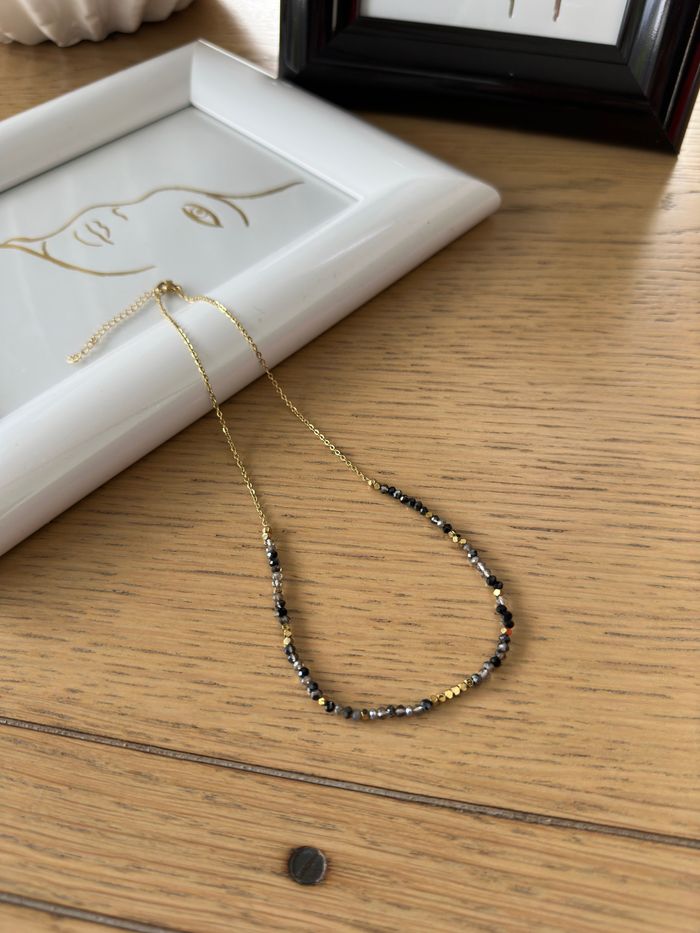 Collier fin en perles de cristal ton gris chaîne en acier inoxydable or avec chaînette réglable  Collection Ateliersdisa - photo numéro 1