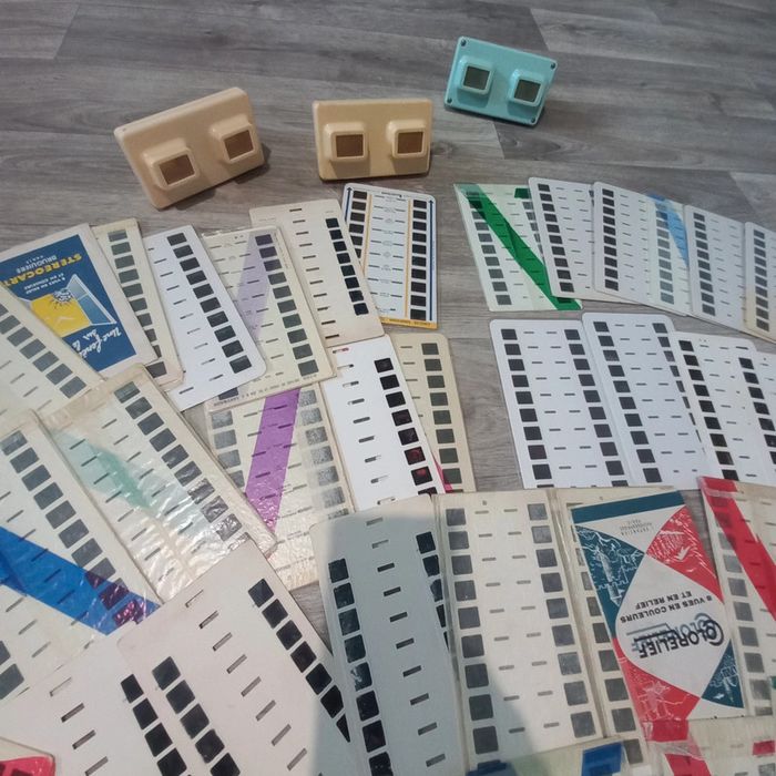 Usure d usage pour objet de collection vintage. 3 stereoscopes et 49 cartes stereiscopiques #tresorvintage
