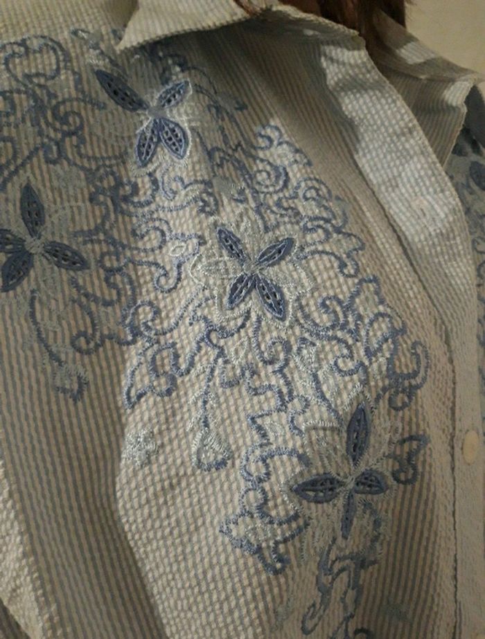 ⚠️ prévoir détachage du col Vintage authentique Taille M/L Broderies Bleu et blanc Rayures fines Parfait état Consultez mon profil pour voir les # disponibles de mon dressing et faciliter vos recherches. Resuction sur les lots #tresorhaut #tresorchemise #tresorbleu #tresortaille40femme #tresortaille38femme