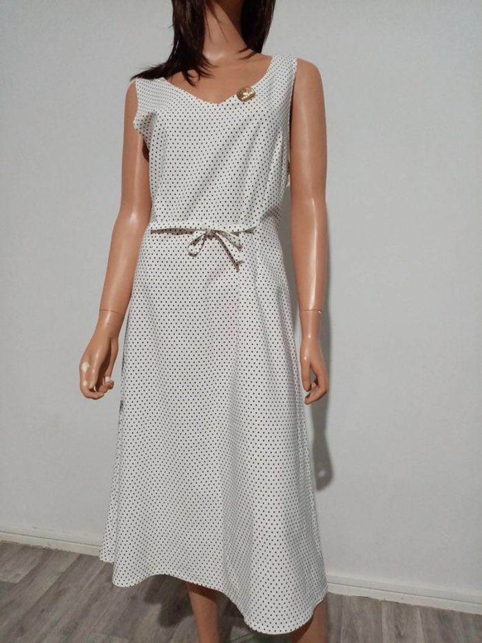 Pièce unique Fait main 42 44 Aisselle à aisselle 51,5 extensible 55 Taille 49 cm extensible 53 Reglable grâce aux petits lacets à la taille Blanche à points noirs Mi. Mollet Vintage authentique Pour articles similaires clikez sur le lien dans l'annonce Pour toute autre recherche rdv dans le à propos de mon profil #tresorvintage #tresortaille42femme #tresortaille44femme #tresorrobe #tresorblanc