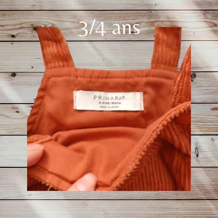 ✨Robe salopette en très bon état 🔖Marque:Primark 📏Taille:3/4 ans 🎨Couleurs: marron orangé 📨 Envois rapide et soigné
