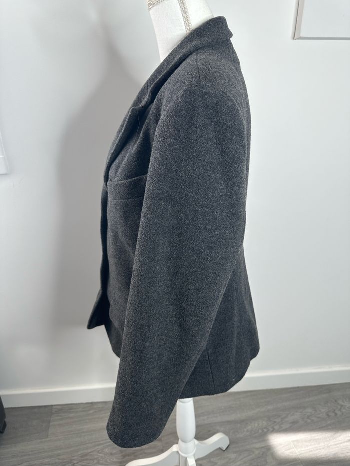 Veste blazer - Excellent état - Taille 44 équivalent XXL - Gris foncé - Décade Kiabi Vintage, années 80-90’ - Doublure intérieure - Deux poches - Se ferme avec des boutons - Fabrication Française 🇫🇷 - Laine, polyamide et polyester