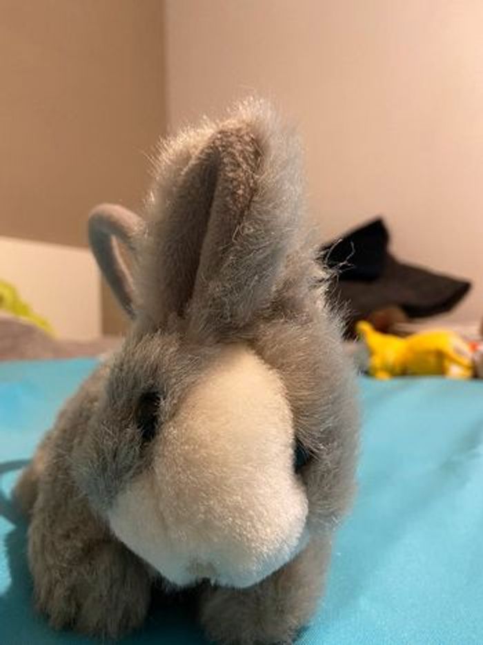doudou lapin qui fait aussi petit sac longueur 24 cm environ sur 15 cm de haut au niveau des oreilles