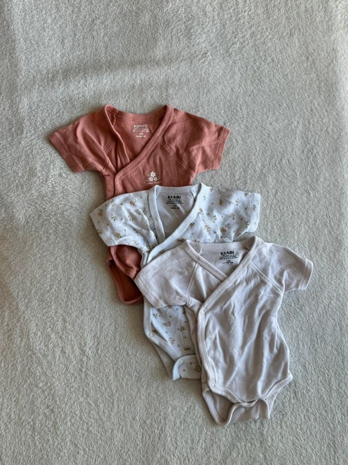 Lot de 3 bodies Kiabi Manches courtes 1 mois / 52-55 cm - 4kg Quasi neuf - Portés une fois