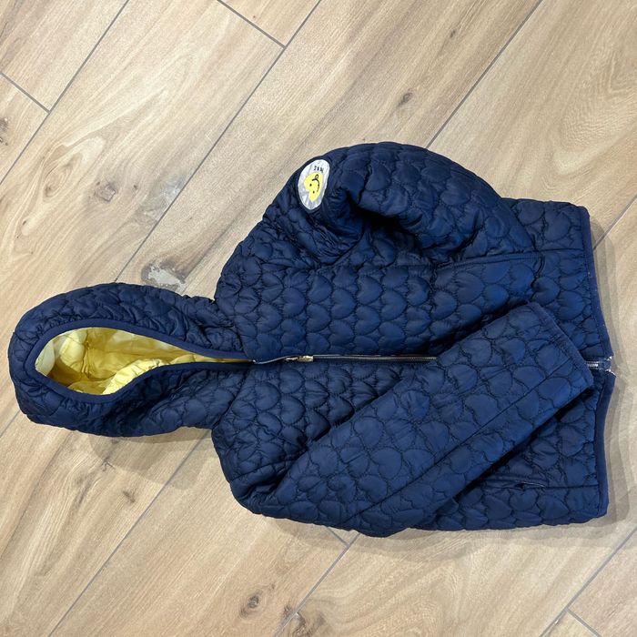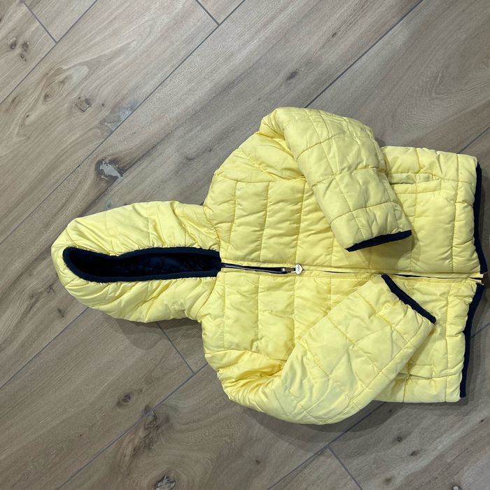 Manteau IKKS avec capuche. Manteau réversible. Très bon état aucun trou ni tâche. Taille 5 ans Bleu avec des coeurs; jaune des lignes.