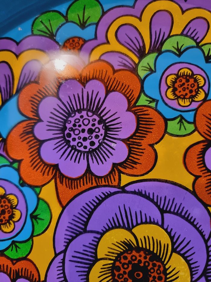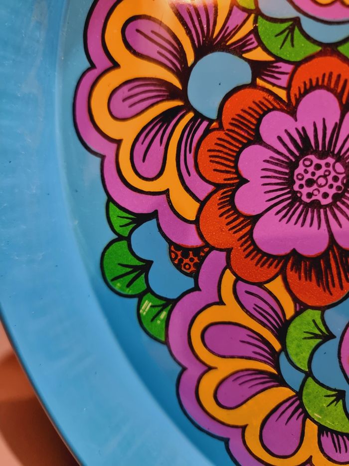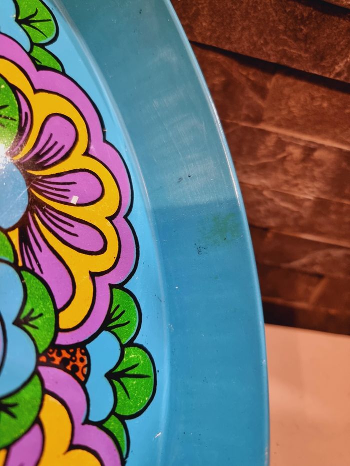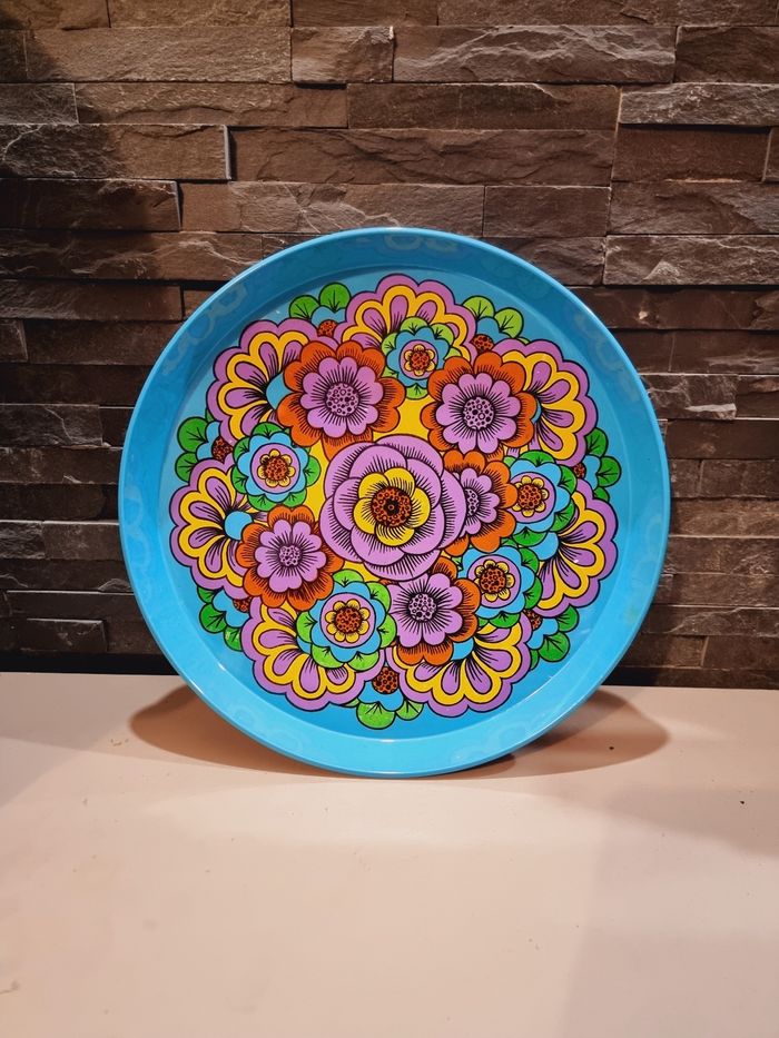 Plateau fleuri multicolor vintage diamètre 30 Bon état général des petits manques de couleurs par ci par la ⚠️ ne bénéficie pas des remises de lot #dodi68_deco