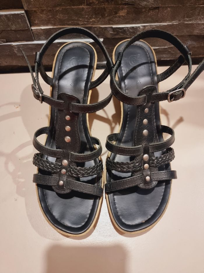 Sandales à talons couleur noir gemo taille 41 Bon état Jusqu'à -30% sur les lots ☺️ #dodi68_chaussonsetchassures #dodi68_promo30 #dodi68_vetementsfemme