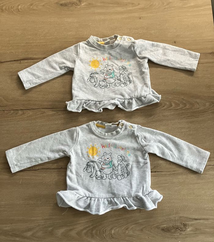 Lot de 2 pulls en coton Winnie l’ourson de Disney taille 3-6 mois Très bon état