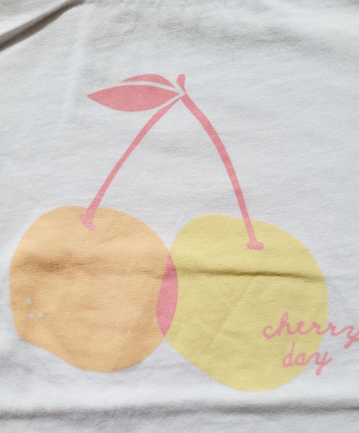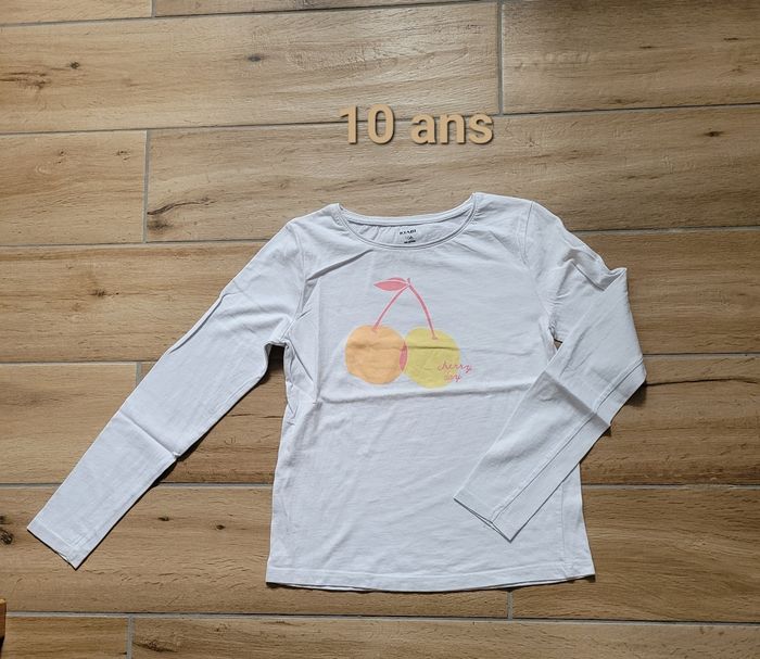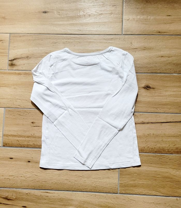 T-shirt manches longues en coton blanc avec un petit motif coloré sur le devant.