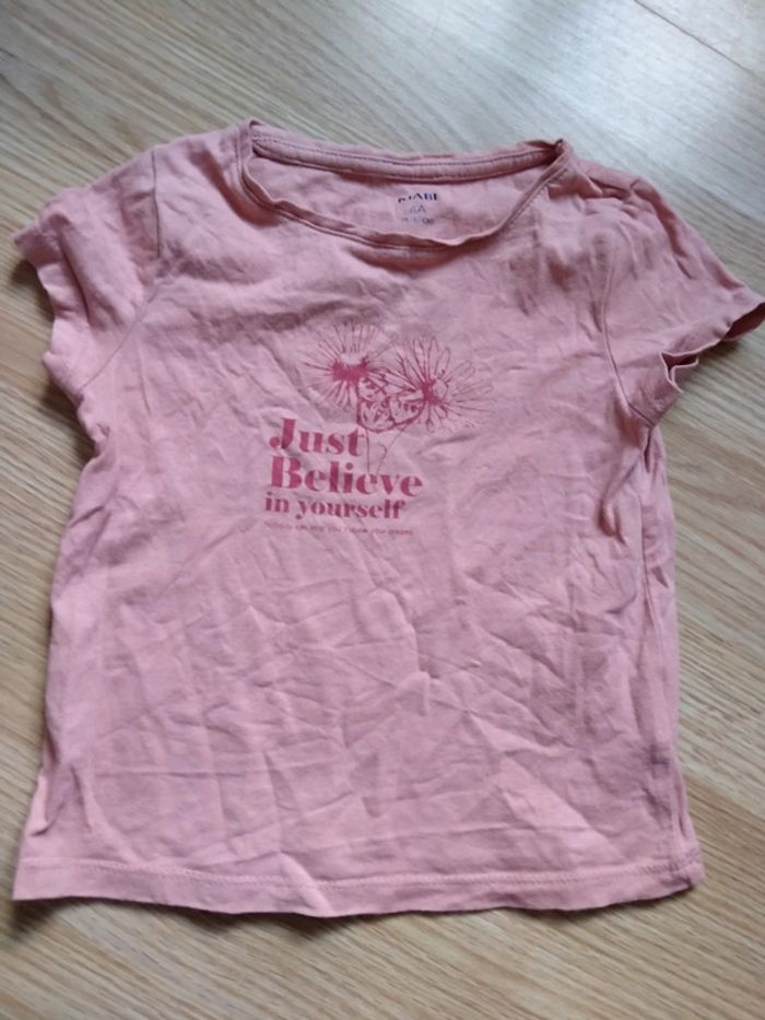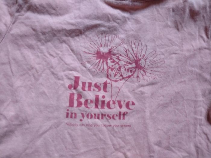 T shirt rose. Kiabi. Taille 4 ans Just believe in yourself Très bon état Lavé avec lessive bébé Maison non fumeur 2 Euros D'autres articles de cette taille sur #ptitesev63fille4ans