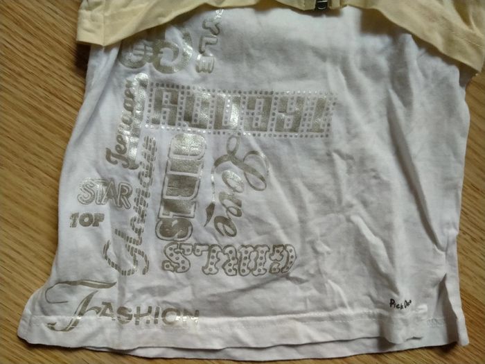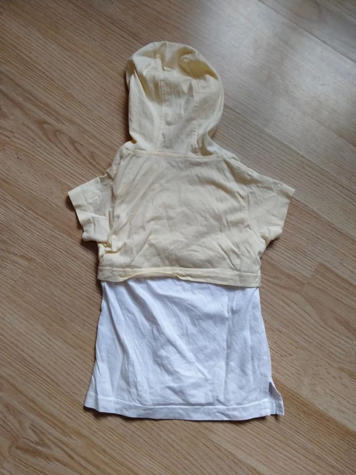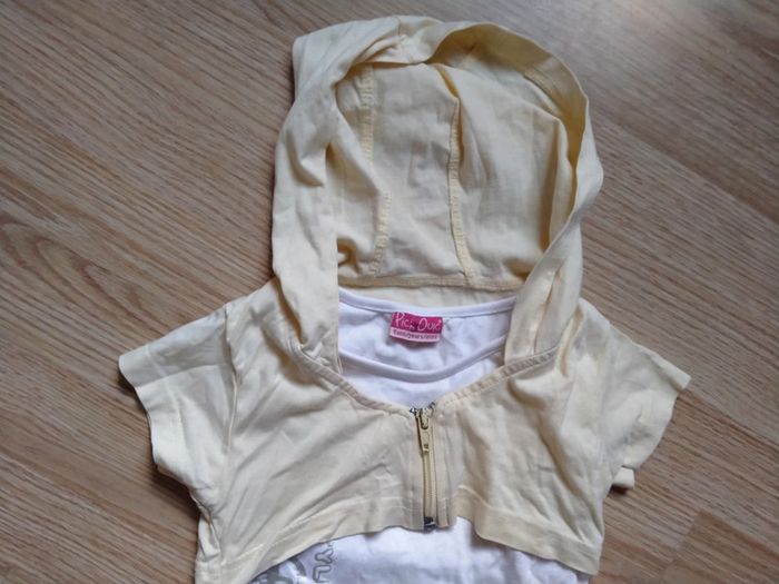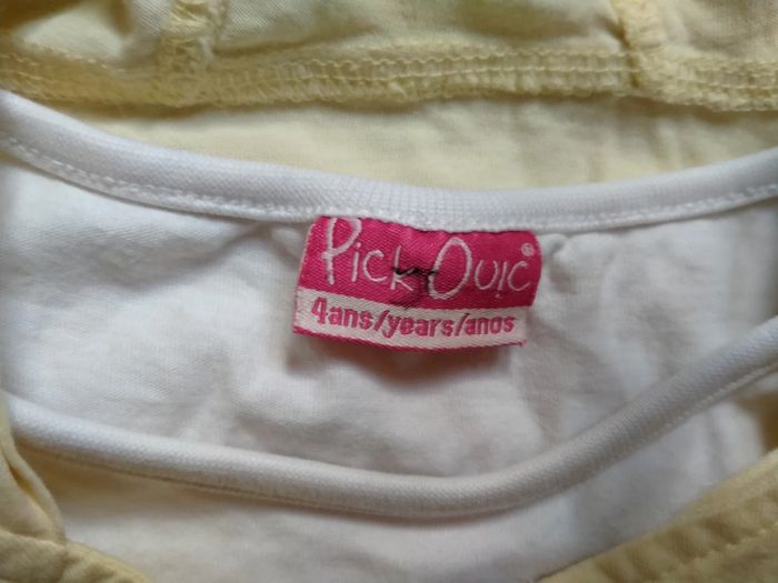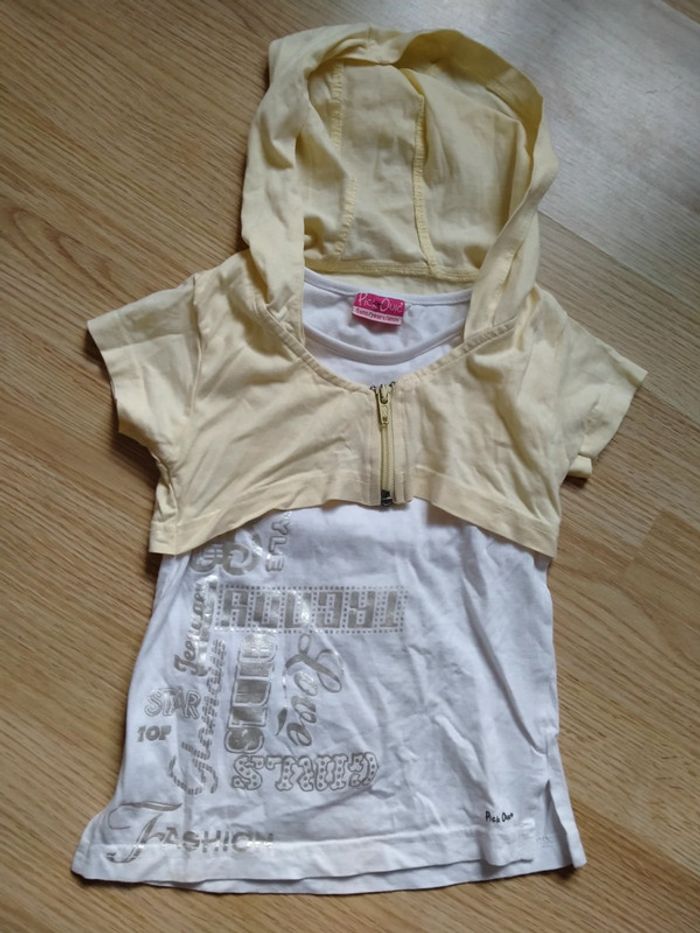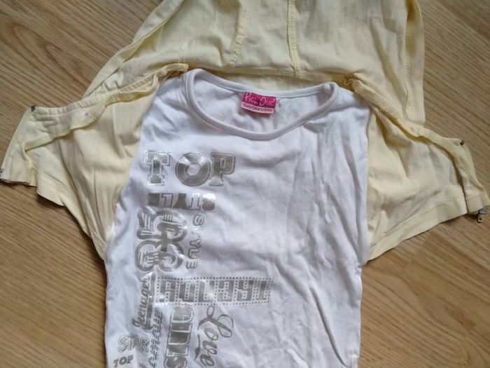 Tee shirt jaune et blanc. Pick ouic Taille 4 ans Haut blanc, veston jaune avec capuche . (Cousu ensemble) Très bon état Lavé avec lessive bébé Maison non fumeur 2 Euros D'autres articles de cette taille sur #ptitesev63fille4ans