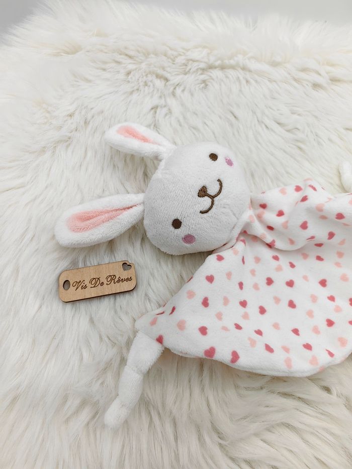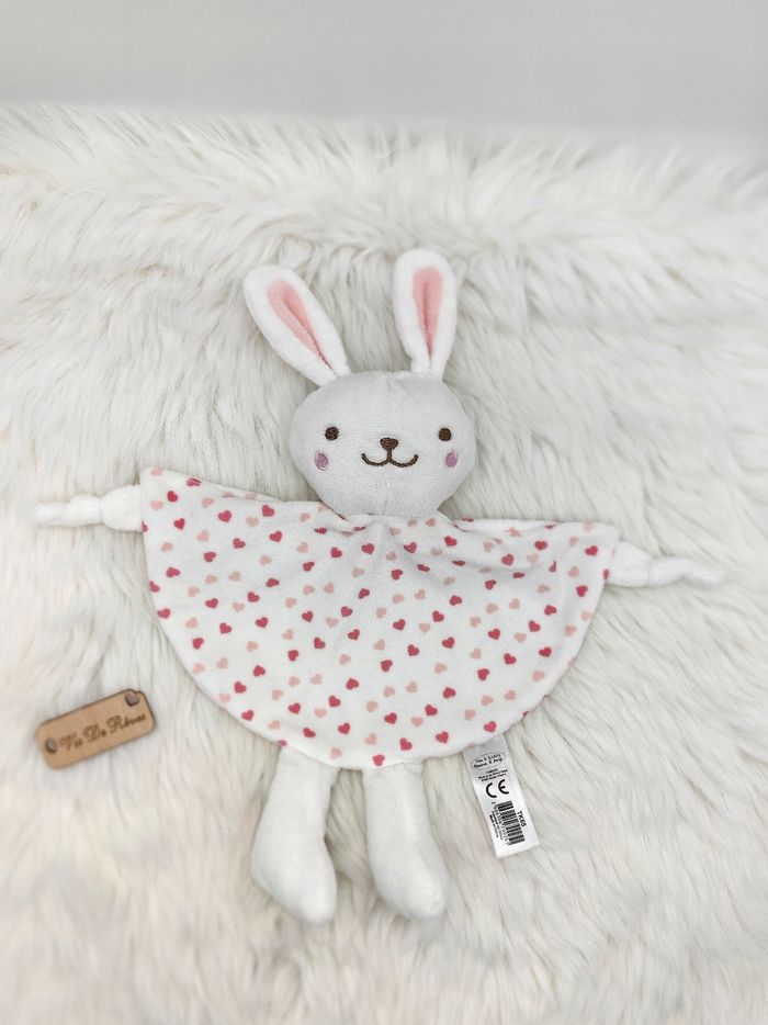 Doudou plat demi cercle Lapin blanc Cœur rose Tom & Kiddy