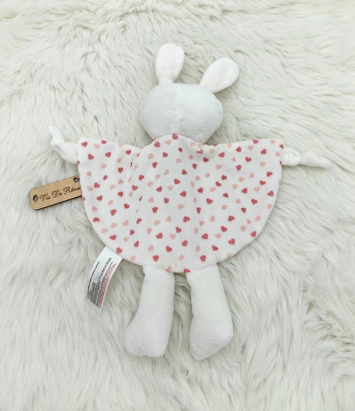 Doudou plat demi cercle Lapin blanc Cœur rose Tom & Kiddy - photo numéro 3