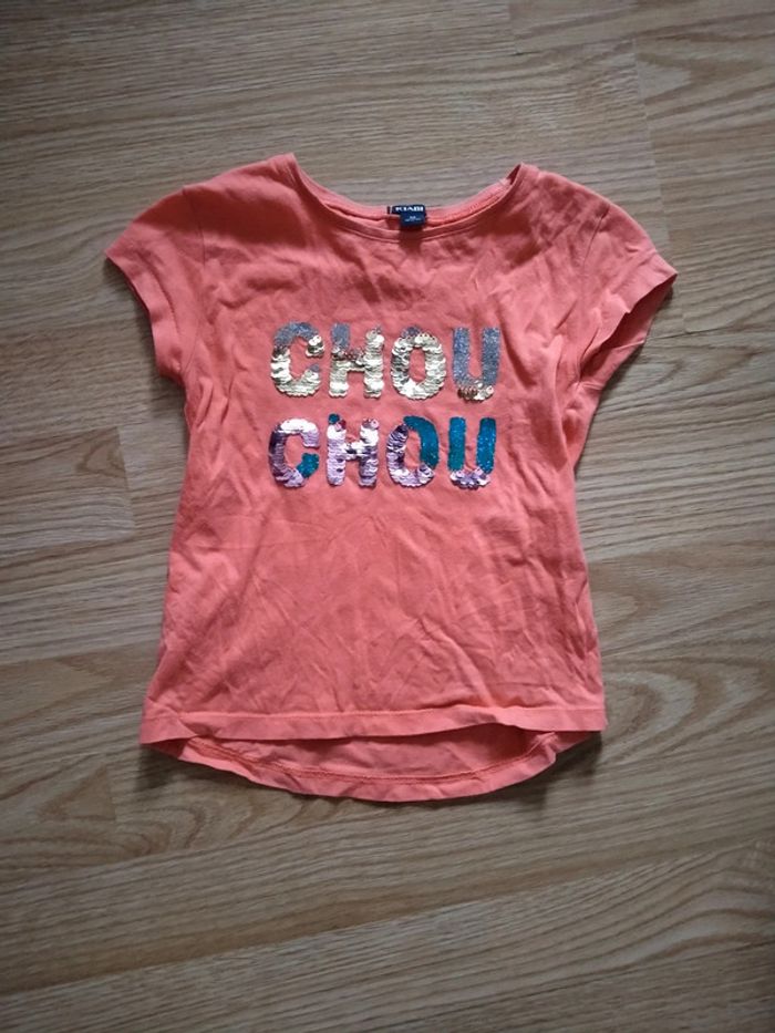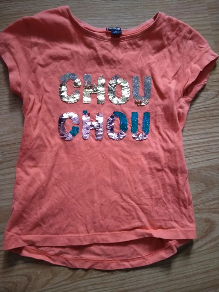 Tee shirt manches courtes. orange. Chou chou. Kiabi Taille 4 ans Chou chou en sequins qui vhabgen de couleur. Très bon état. Lavé avec lessive bébé Maison non fumeur 2 Euros D'autres articles de cette taille sur #ptitesev63fille4ans