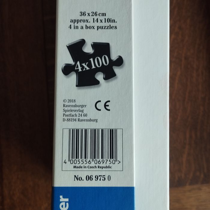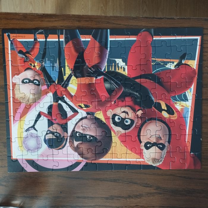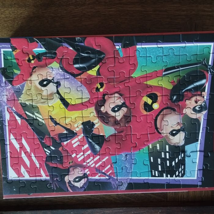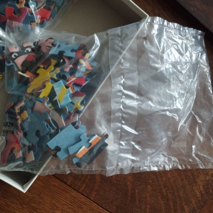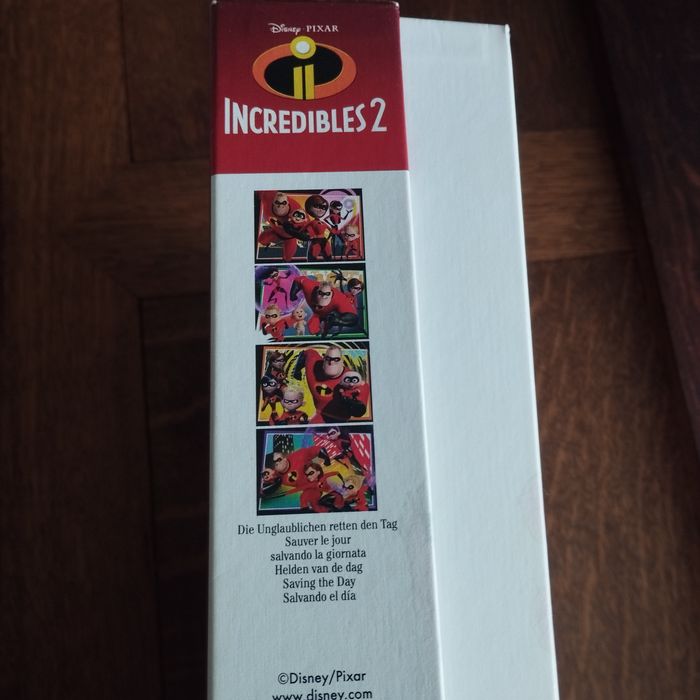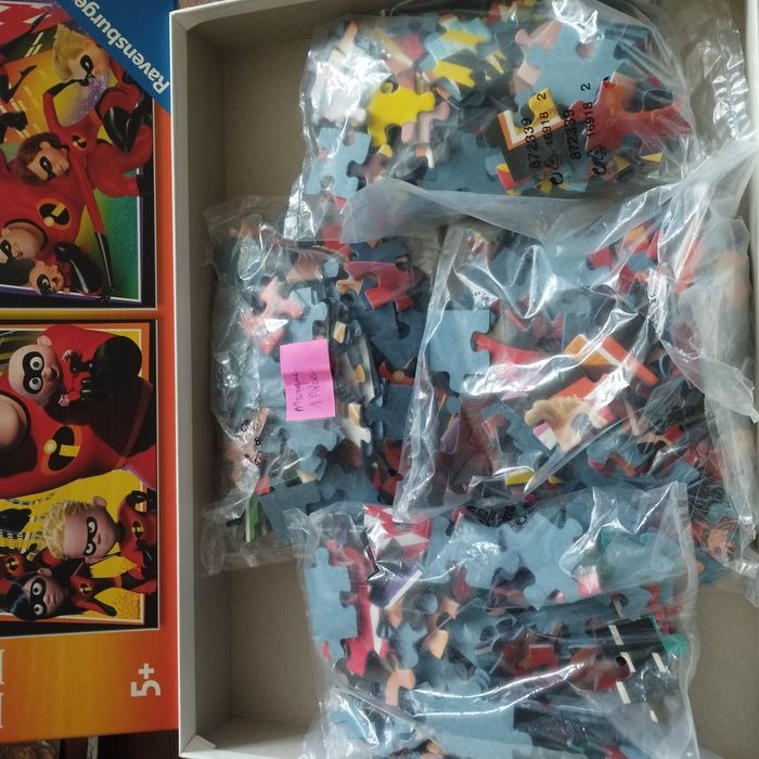 boîte de 4 puzzles "Incredibles2" de Ravensburger, sur les 4 il y en a un qui est dans son sachet scellé jamais ouvert, et sur un puzzle il manque 1pièce voir dernière photo. La boîte et les pièces sont en parfait état. 5ans+.