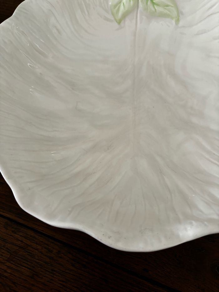 Vintage très beau service composé d’un grand plat de présentation creux ainsi que de ses 6 coupelles Barbotine fraises et feuilles de choux Jolie couleur beige En bon état à noter quelques craquelures d’origine, l’une des coupelles présente quelques traces un peu plus foncées et une autre une micro ébréchure, le tout est visible sur les photos et reste minime Taille coupelles : hauteur = 5 cm et diamètre 13 cm Plat : hauteur = 7,2 cm et diamètre 29,7 cm