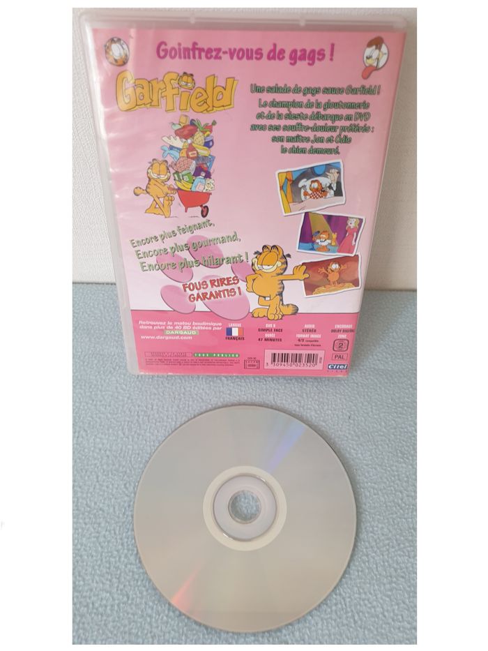 DVD Garfield. DVD Garfield "l'appétit vient en mangeant". Il présente des rayures qui n'empêchent pas le fonctionnement du DVD. En bon état. 1,50€. #vero38110enfantsdivers