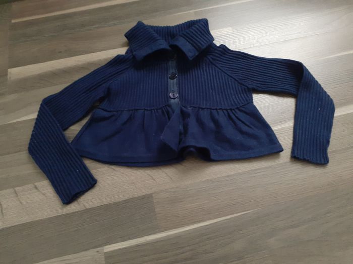 Joli gilet court bleu marine, col haut. Taille : 4 ans (étiquette 4 ans mais taille grand) Marque : to be too Bon état