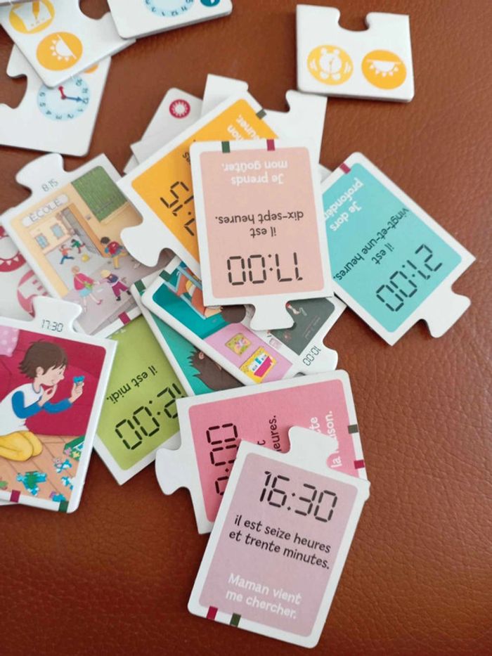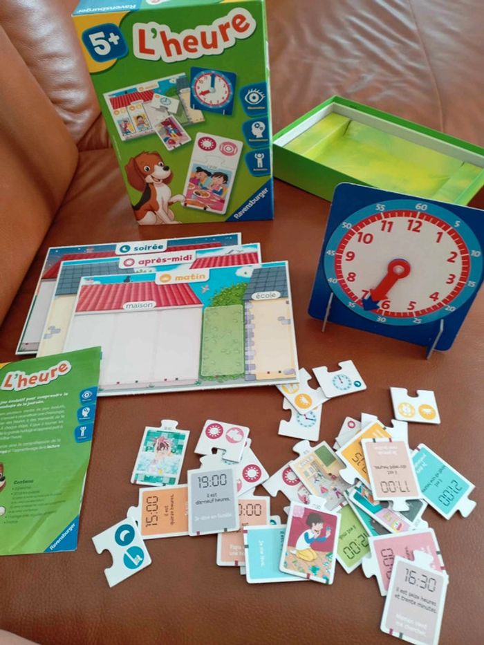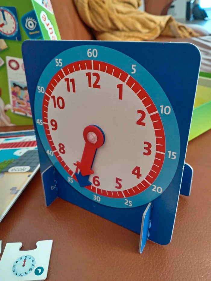 Jeu pour l'apprentissage de l'heure d'occasion. Très bon état et complet. Suite à un tri dans sa chambre, ma fille a décidé de s'en séparer. Ce qui viendra compléter sa tirelire.