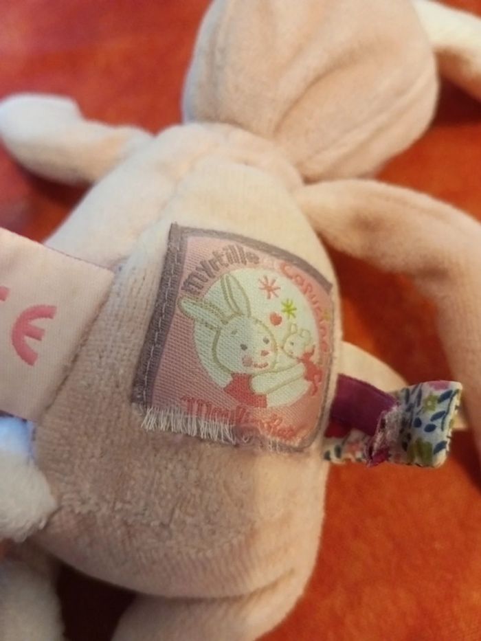 Doudou peluche lapin en pyjama rose, Myrtille et Capucine de Moulin Roty En très bon état mis à part l'étiquette de la marque ,voir la dernière photo. Dans mon dressing, il y a d'autres doudous , des Petshop, des Lego Duplo, des Playmobil, des Barbie et beaucoup de peluches, jeux et jouets vintage #nourriture06_doudou