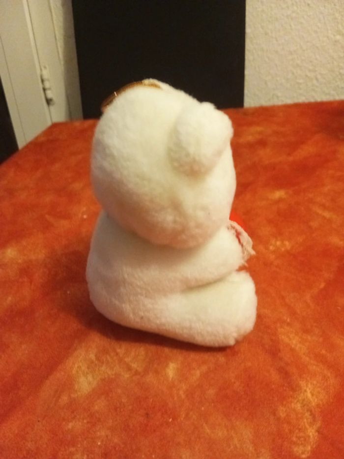 Peluche chat blanc tenant un coeur rouge avec dentelle et inscription je t'aime Très bon état, vendu comme sur les photos Dans mon dressing, il y a d'autres Petshop, des Lego Duplo, des Playmobil, des Barbie et beaucoup de peluches, jeux et jouets vintage #Nourriture06_petshop