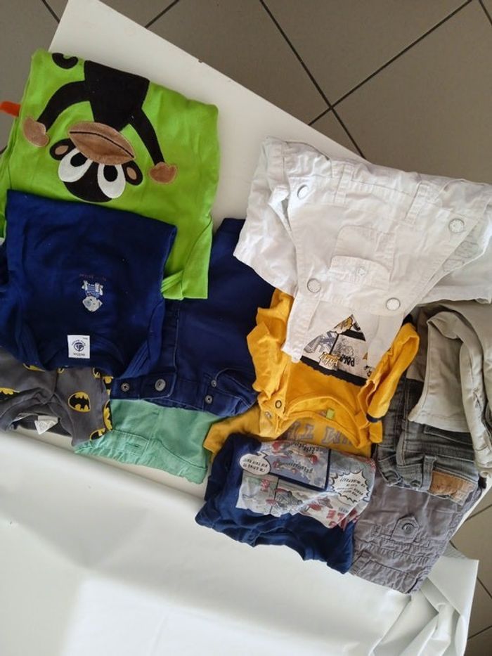 Je vends ce gros lots en très bon état ,idéal pour les beaux jours Taille 68 1 pantalon Zara 1 pantalon jeans bel&bo 1salopette mini Zara 1 short h&m 1short lc waikiki 1 t-shirt manche demi manche Orchestra 1t-shirt club baby 1t-shirt manche 3/4 mayoral 1 body petit bateau 1combinaison demi manche h&m Batman 1combinaison mimi lipfish 1combinaison pijama ( chaude ) 1 chapeau 1 taille 68 cm 44/45 1 chapeau pas de taille