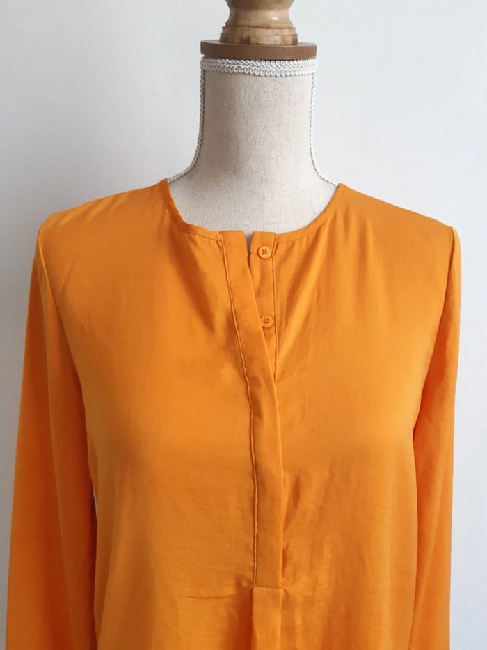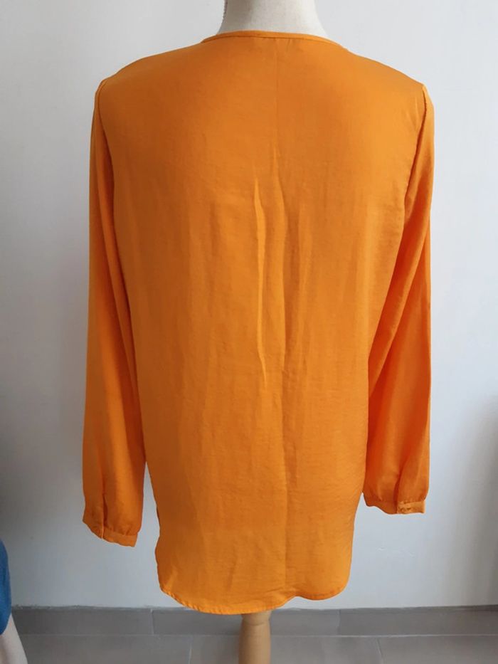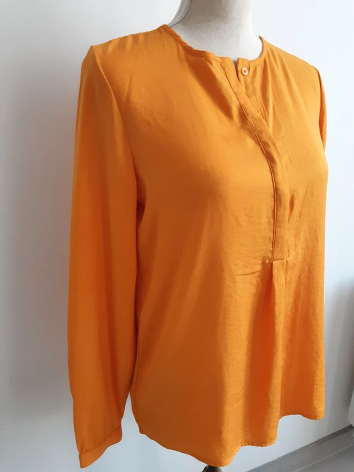 Blouse orange à manches longues Boutonnée sur le devant Un peu plus longue à l'arrière qu'à l'avant Fine, légère et fluide Taille M/38 LH by La Halle Etiquette de matière coupée Mes autres vêtements femme taille 38: #anthonyagnes_femme38 #vêtement #femme #chemisier #blouse