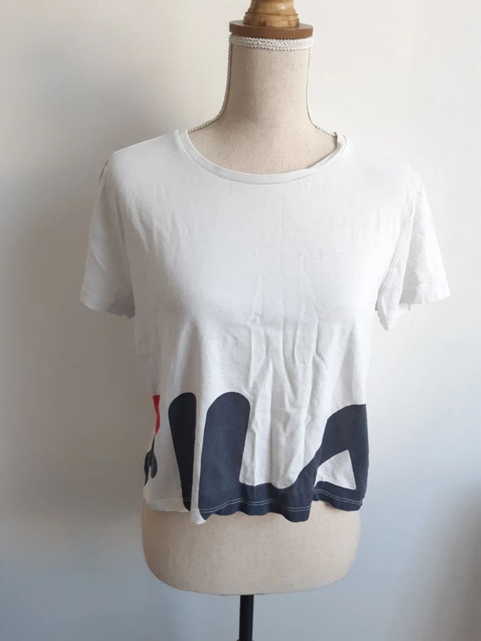 Tee shirt blanc inscription "Fila" L'étiquette indique une taille M, convient davantage à un S/36 #anthonyagnes_femme36