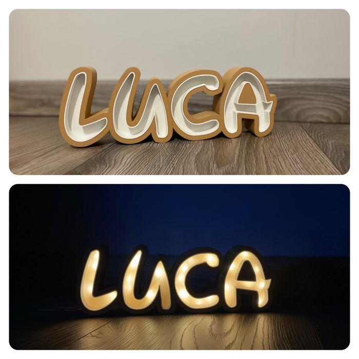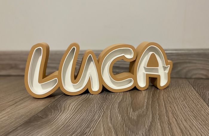 Couleurs bois / marrons clair . Mp pour plus d infos . Prénom lumineux 3D