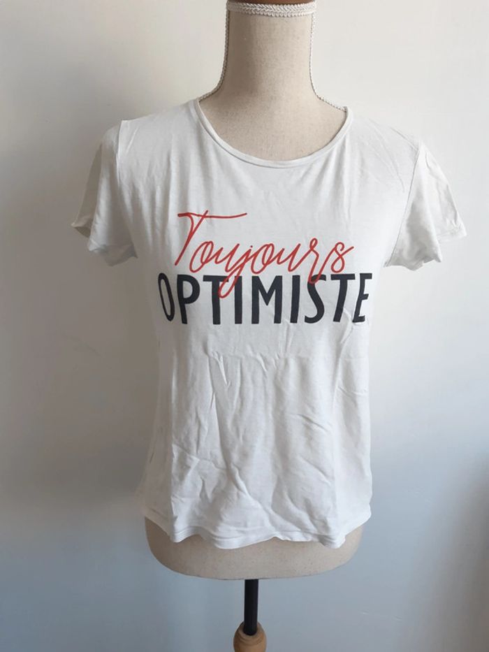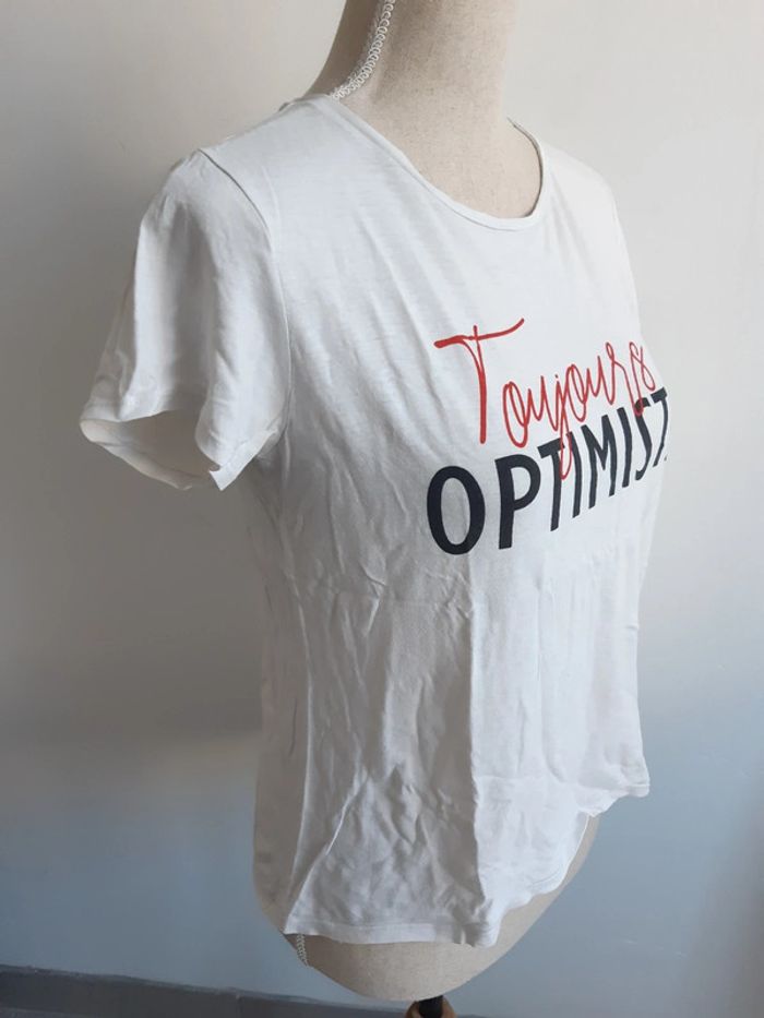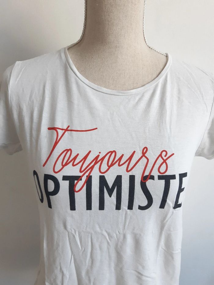 Tee shirt blanc Inscription "toujours optimiste" Taille S/36 #anthonyagnes_femme36