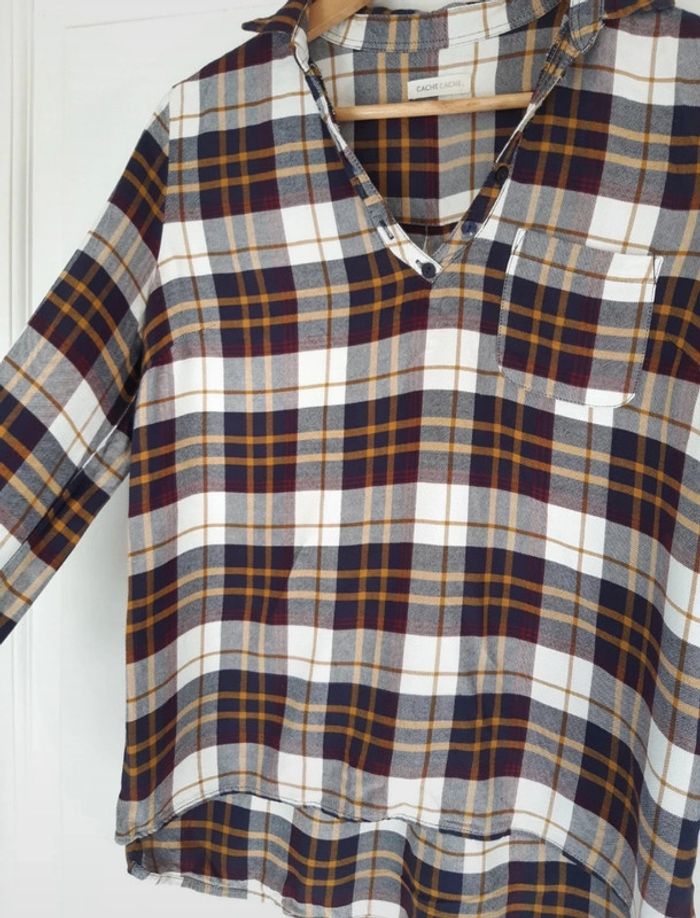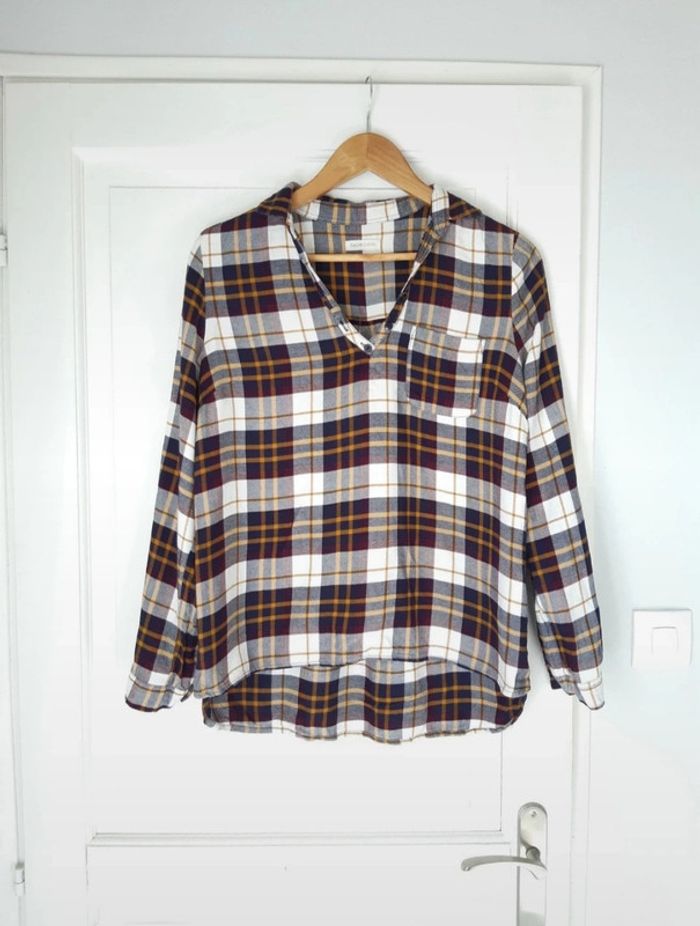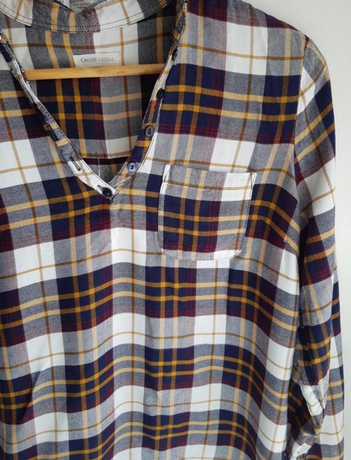 Blouse à motif carreaux Poche sur le devant Boutons au col Col chemise Manches longues retroussables Plus longue à l'arrière qu'à l'avant Etiquettes coupées mais correspond à un M/38 Cache Cache #anthonyagnes_femme38