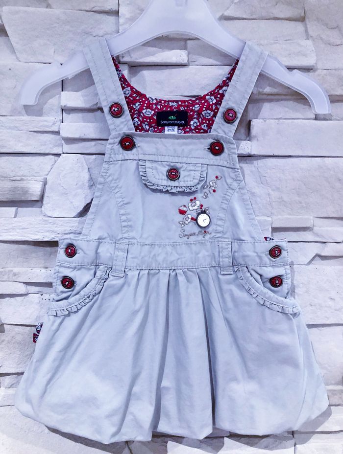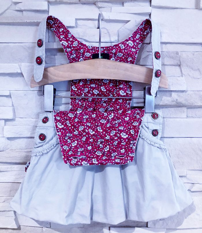 MARQUE : SERGENT MAJOR... ÉTAT : EXCELLENT !!! TAILLE : 6 MOIS OU STATURE 67 CM COLORIS : ROUGE + TAUPE + DIVERS COMPOSITION : COTON + DIVERS MOTIF : IMPRIMÉ LIBERTY PARTICULARITÉS : - Salopette Doublée - Boutons Bijoux (Nacrés + Forme Cœurs) - Broderies Fleurs + Fantaisies