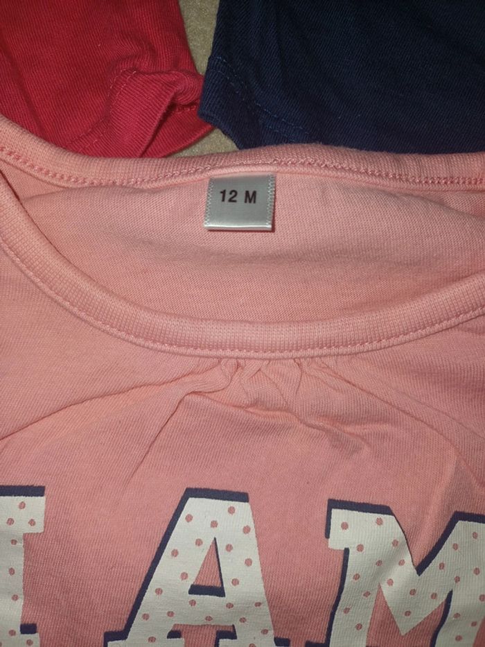 Superbe lot de 4 t shirts manches longues 12 mois fille - photo numéro 3