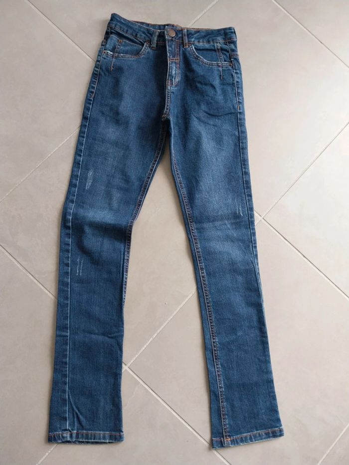 Jean's brut T 12 ans Marque Orchestra Coupe droite serre skinny Taille élastique réglable Fait abîmé à des endroits pour le style Bouton crochet 99% coton, 1% elasthanne Neuf jamais porte Vendu 4€ #T12ans_missteph37