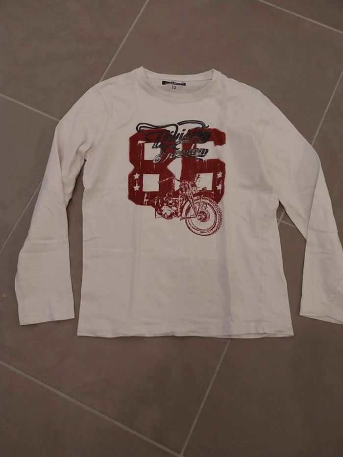 Tee shirt blanc avec dessin rouge T 10 ans marque In extenso manche longue peu porté vendu 2€ #T10ans_missteph37
