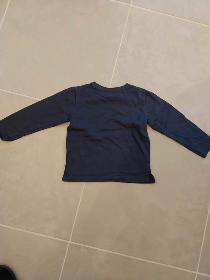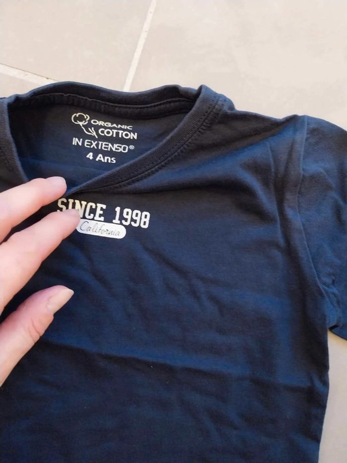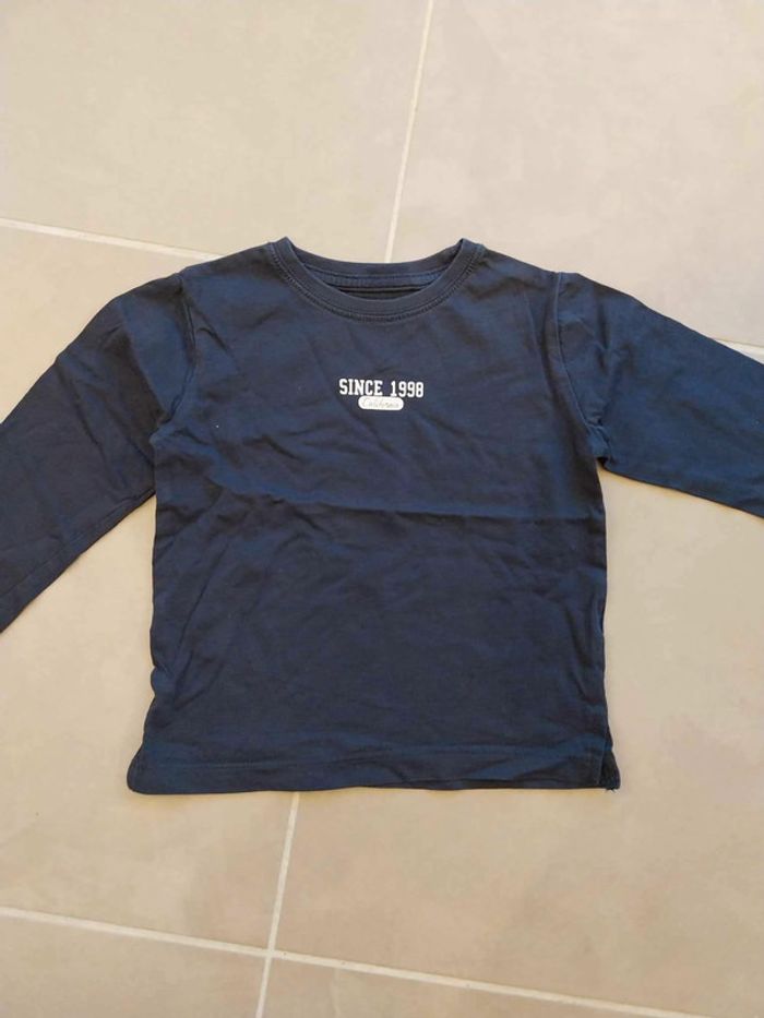 Tee shirt bleu fonce T 4 ans marque In extenso coton bio manche longue ecriture devant neuf jamais porté vendu 3€ #T4ans_missteph37