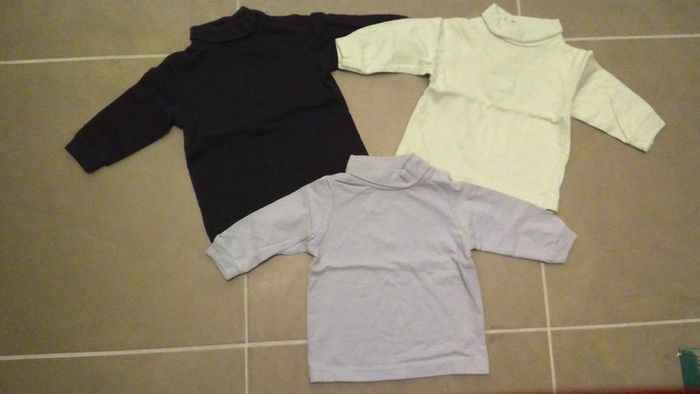 Lot 3 haut T 6 mois col roule neuf jamais servi - 1 bleu ciel marque Tex baby - 1 vert pale marque Mini Gang - 1 bleu marine marque Tex baby Vendu 4€ les 3 ou 2€ piece #T6mois_missteph37 #bebe_missteph37