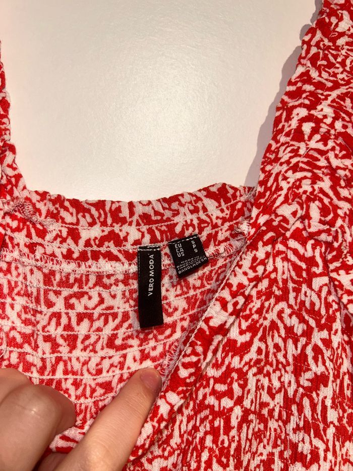 Robe longue rouge à fleurs blanches Vero Moda – Taille S – Neuve sans étiquette - photo numéro 3