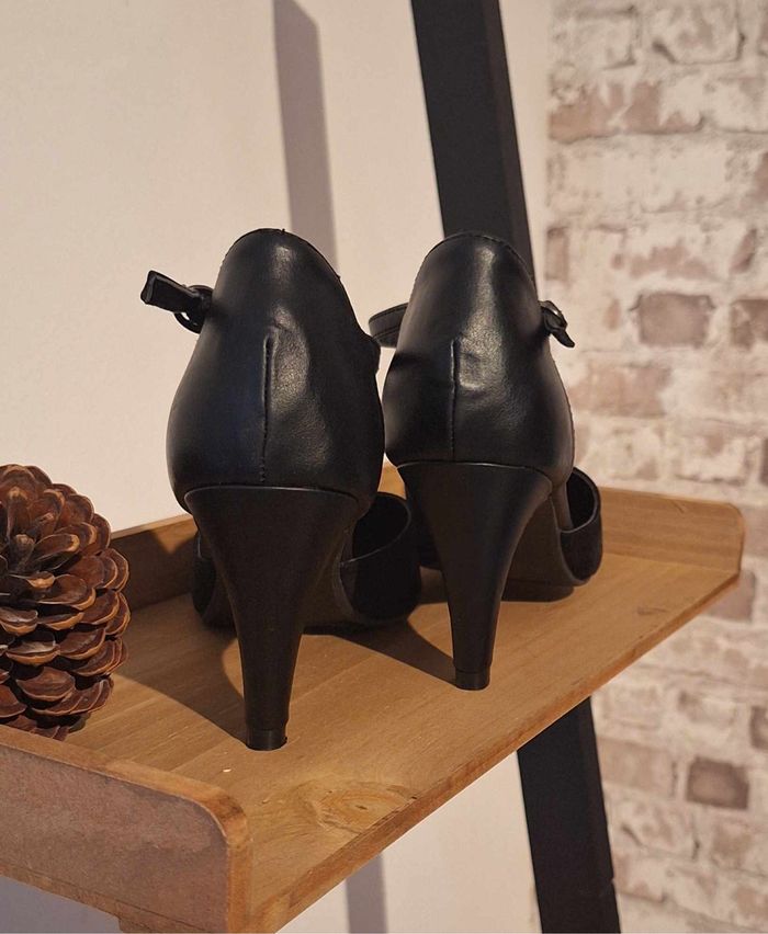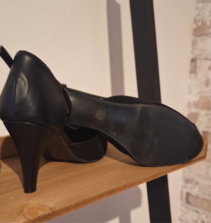 CHAUSSSURE P40 N°205 escarpin chic Noir 2 matières Talon 8 cm Semelle intérieur cuir ⚠️leger défaut sur le haut de la chaussure Ne gene en rien voir photo Pointure 40 Boite d origine valeur 19.99€ Neuf Ligne à suivre 10€ #kelly_chaussureP40