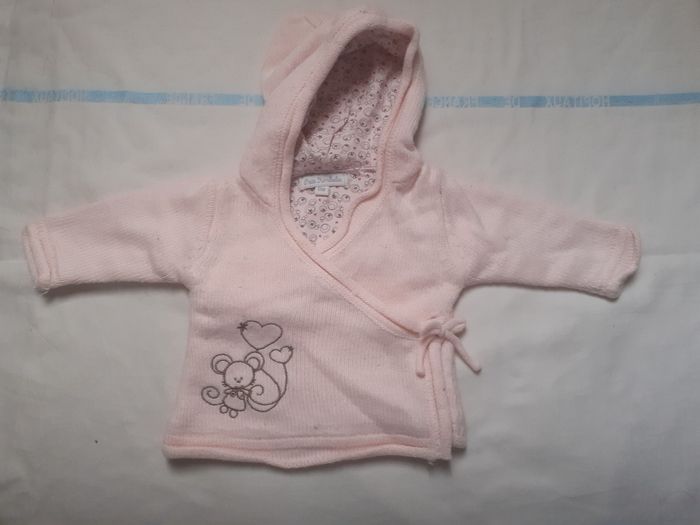 Veste rose clair caché cœur à capuche 1 mois