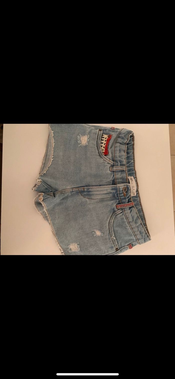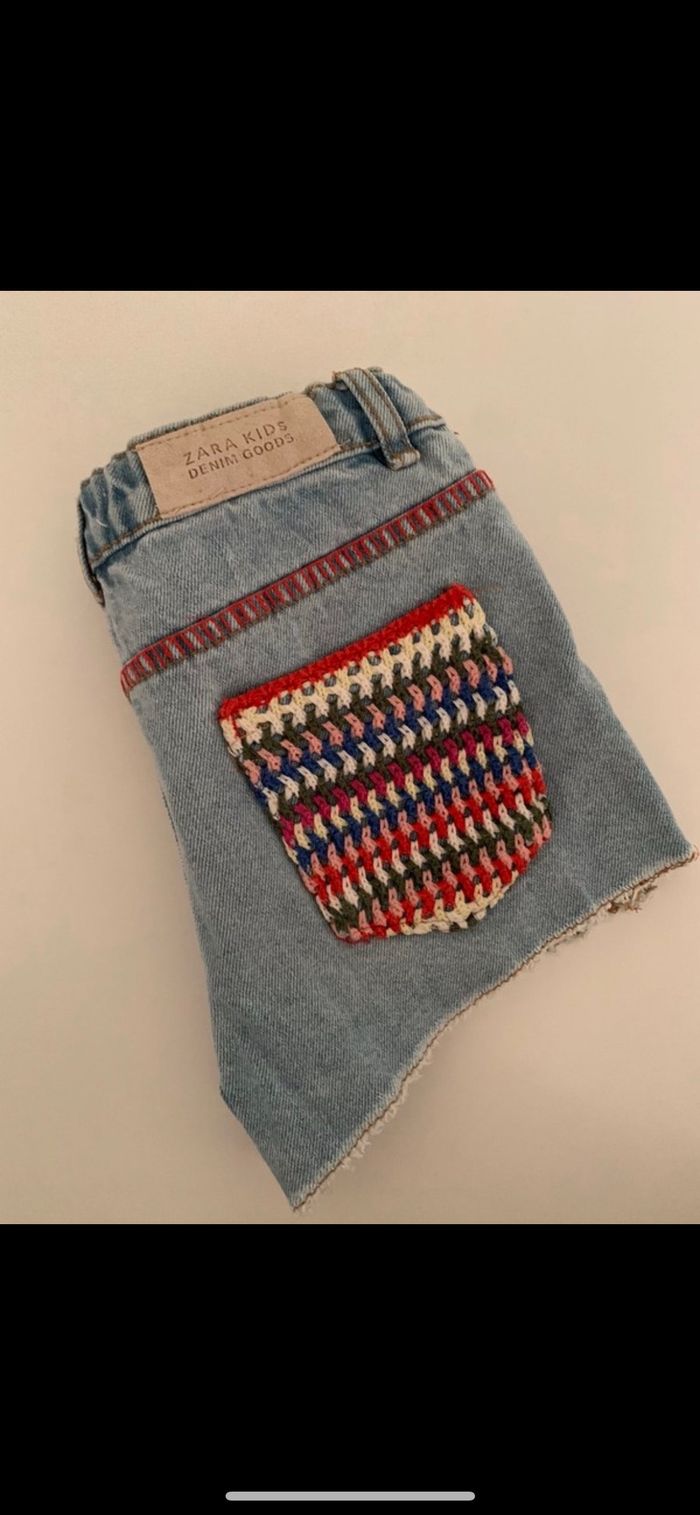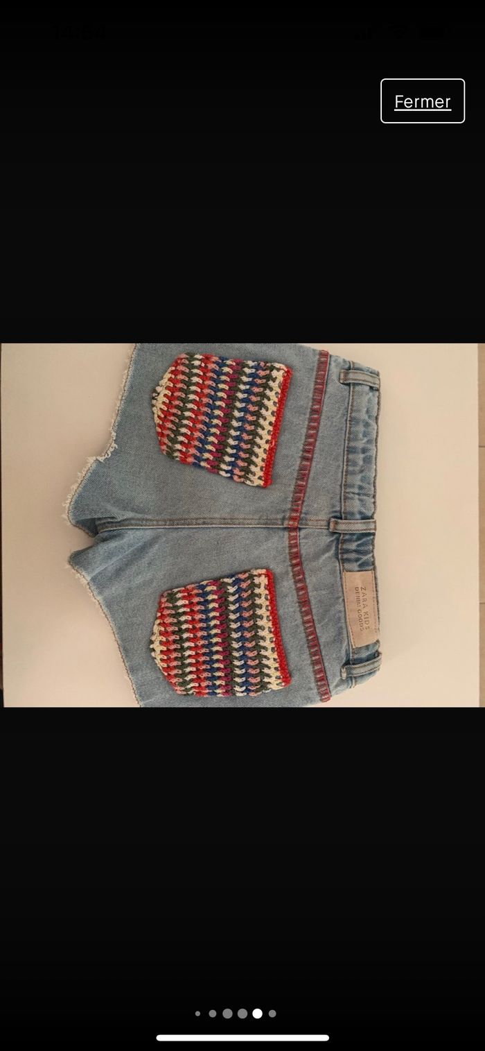 Magnifique Short en jean avec couture maille colorée Sur les poches Réglable de l intérieur Effet déchirer Zara 8 ans (128 cm)