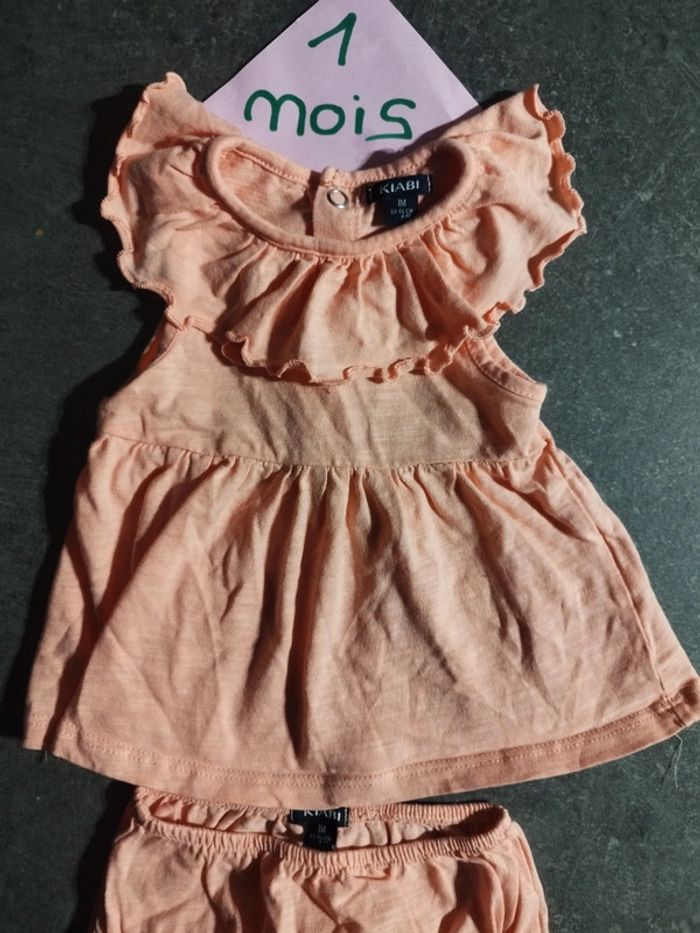 Ensemble été couleur corail, - 1 robe - 1 petite culotte assortie Très bon état, peu porté !