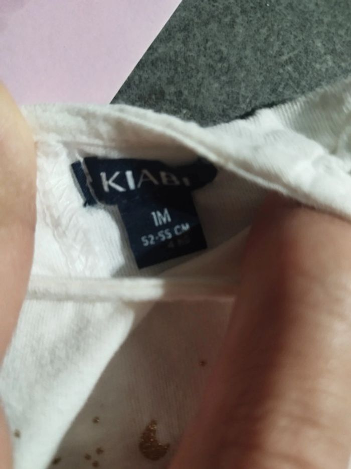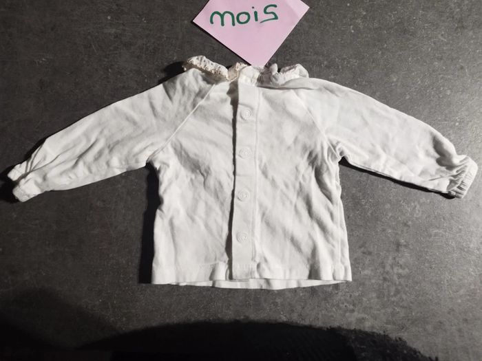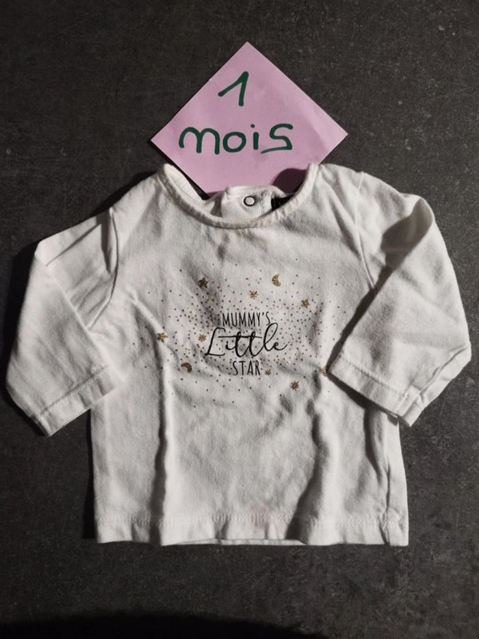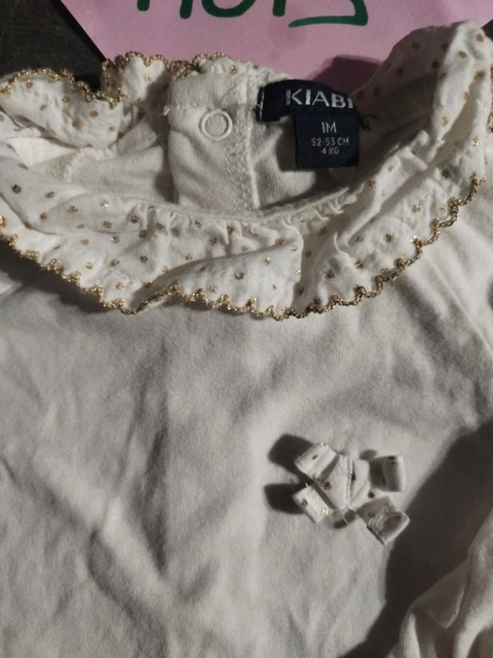T-shirt manches longues blanc avec col détails dorés, Très bon état, peu porté ! Taille 1 mois #vetementbebefille1moisjustine182129