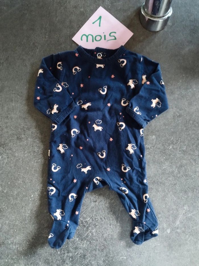 Pyjama bleu foncé motifs licorne 🦄 ECXELLENT état, comme neuf ! Taille 1 mois #vetementbebefillejustine182129