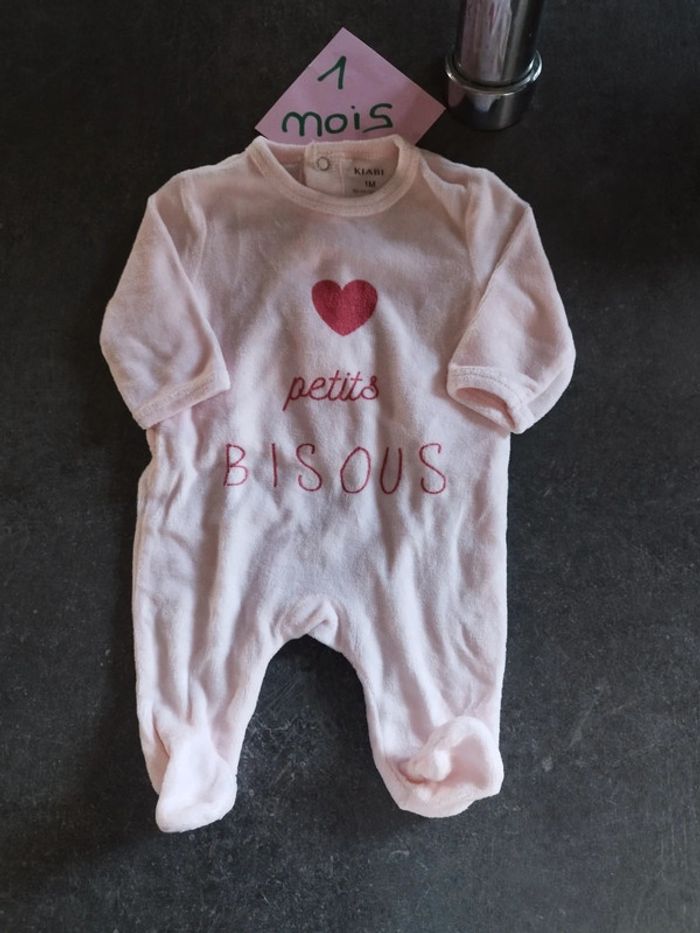Pyjama rose en velours, inscription "petits bisous" NEUF jamais porté ! Taille 1 mois #vetementbebefille1moisjustine182129