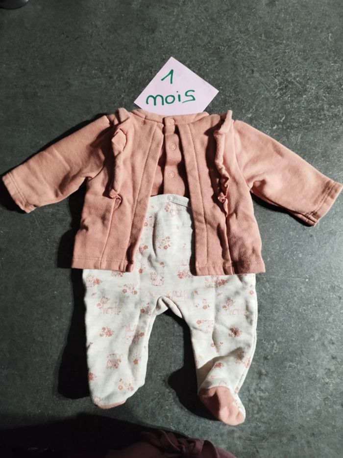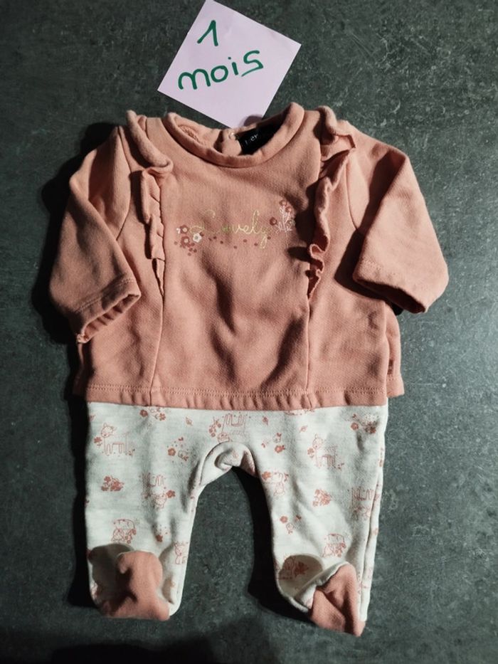 Beau pyjama épais inscription "lovely" motifs biche, EXCELLENT ÉTAT, porté qu'une fois ! Taille 1 mois #vetementbebefille1moisjustine182129
