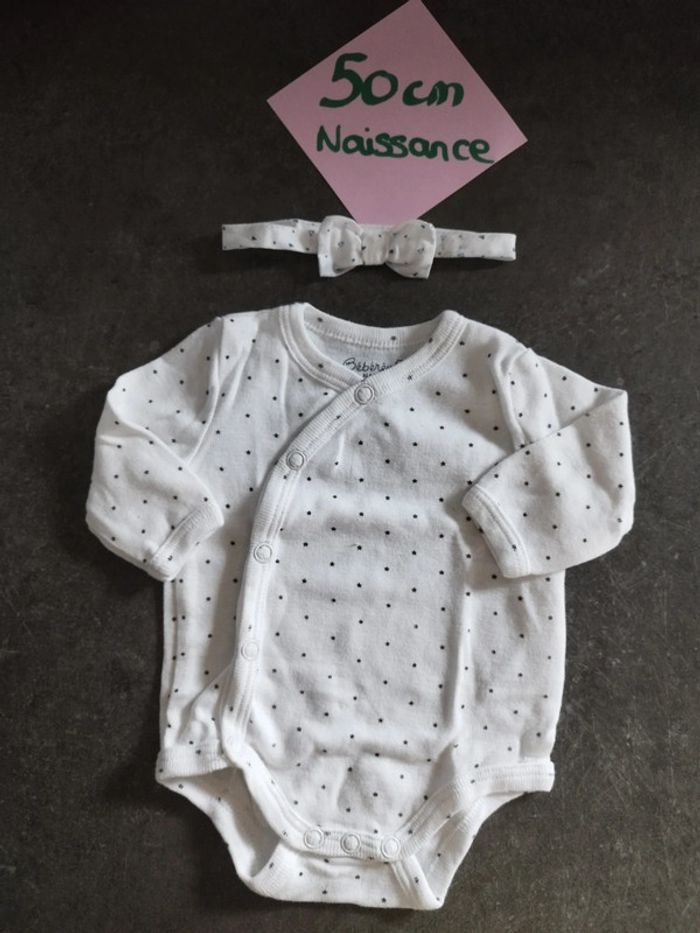 Ensemble body et bandeau Le body s'ouvre devant. Taille naissance Très bon état #vetementbebefille50cmjustine182129